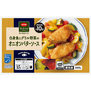 白身魚とグリル野菜のオニオンバターソース